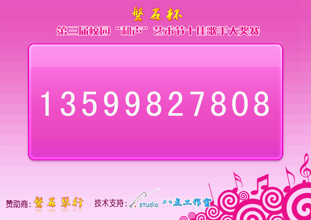华侨大学福建音乐学院校园艺术节以“丰富校园课余文化,营造良好的艺术氛围,彰显大学生的个性魅力、促进同学们的“全面发展”为宗旨。本公司为此届艺术节提供短信平台,大大提高了现场的互动性。